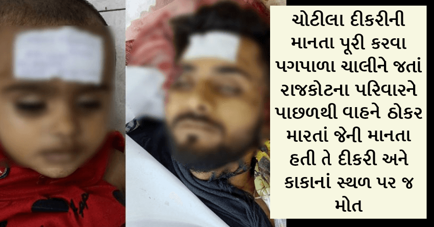 ચોટીલા દીકરીની માનતા પૂરી કરવા પગપાળા ચાલીને જતાં રાજકોટના પરિવારને પાછળથી વાહને ઠોકર મારતાં જેની માનતા હતી તે દીકરી અને કાકાનાં સ્થળ પર જ મોત