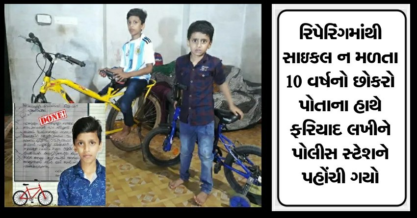 રિપેરિંગમાંથી સાઇકલ ન મળતા 10 વર્ષનો છોકરો પોતાના હાથે ફરિયાદ લખીને પોલીસ સ્ટેશને પહોંચી ગયો
