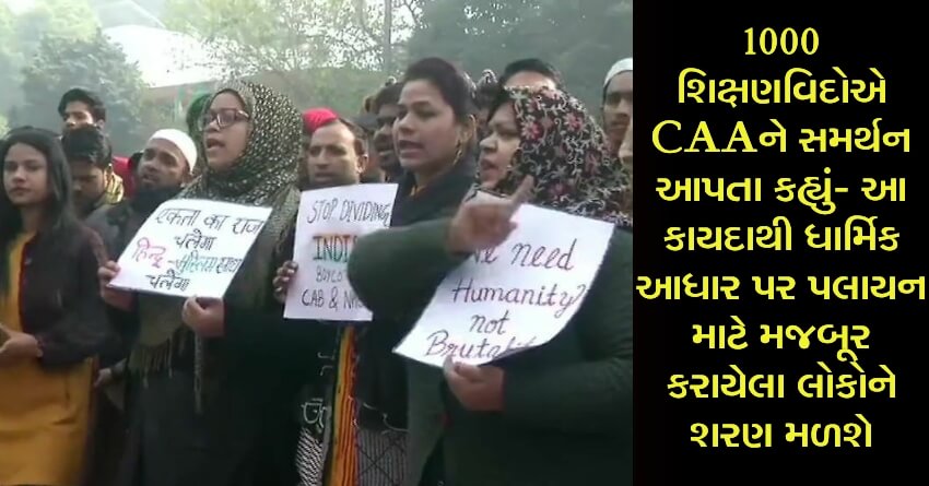 1000 શિક્ષણવિદોએ CAAને સમર્થન આપતા કહ્યું- કાયદાથી ધાર્મિક આધાર પર પલાયન માટે મજબૂર કરાયેલા લોકોને શરણ મળશે