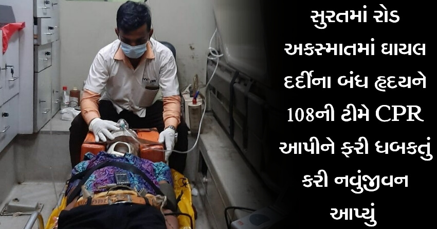 સુરતમાં રોડ અકસ્માતમાં ઘાયલ દર્દીના બંધ હૃદયને 108ની ટીમે CPR આપીને ફરી ધબકતું કરી નવુંજીવન આપ્યું
