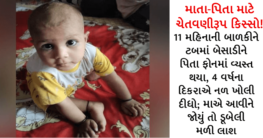 માતા-પિતા માટે ચેતવણીરૂપ કિસ્સો! 11 મહિનાની બાળકીને ટબમાં બેસાડીને પિતા ફોનમાં વ્યસ્ત થયા, 4 વર્ષના દિકરાએ નળ ખોલી દીધો; માએ આવીને જોયું તો ડૂબેલી મળી લાશ