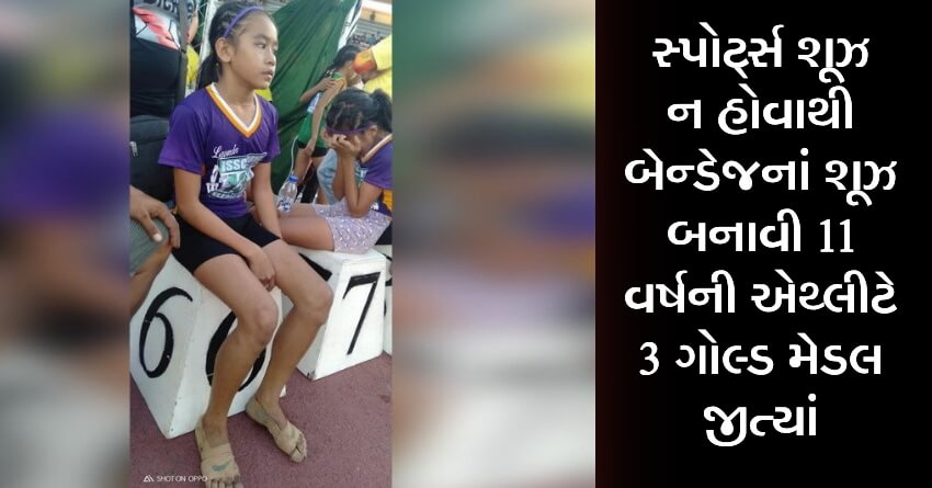 સ્પોર્ટ્સ શૂઝ ન હોવાથી બેન્ડેજનાં શૂઝ બનાવી 11 વર્ષની એથ્લીટે 3 ગોલ્ડ મેડલ જીત્યાં