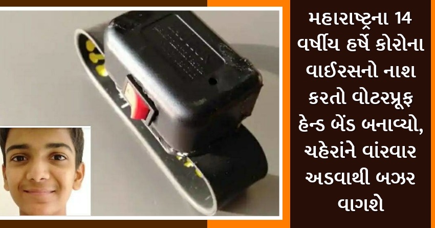 મહારાષ્ટ્રના 14 વર્ષીય હર્ષે કોરોના વાઈરસનો નાશ કરતો વોટરપ્રૂફ હેન્ડ બેંડ બનાવ્યો, ચહેરાંને વાંરવાર અડવાથી બઝર વાગશે