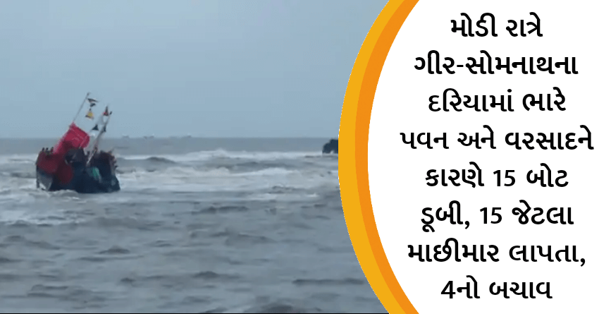 મોડી રાત્રે ગીર-સોમનાથના દરિયામાં ભારે પવન અને વરસાદને કારણે 15 બોટ ડૂબી, 15 જેટલા માછીમાર લાપતા, 4નો બચાવ