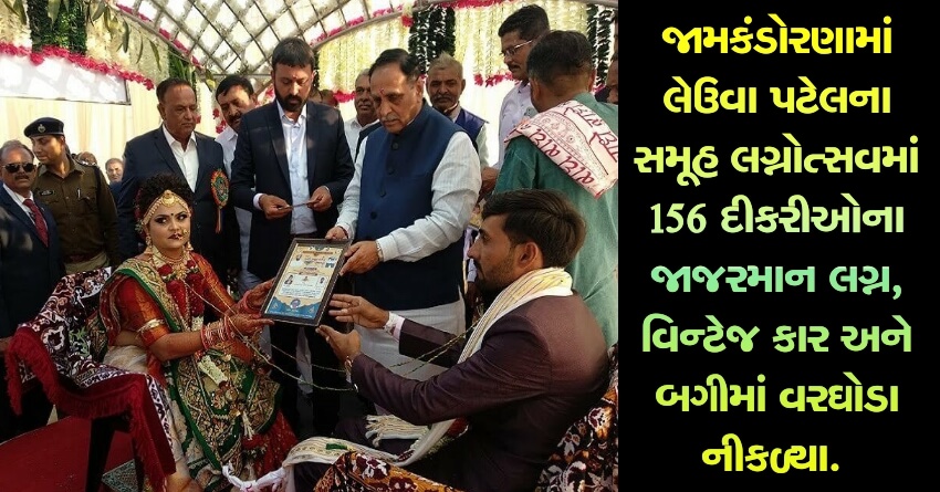 જામકંડોરણામાં લેઉવા પટેલના સમૂહ લગ્નોત્સવમાં 156 દીકરીઓના જાજરમાન લગ્ન, વિન્ટેજ કાર અને બગીમાં વરઘોડા નીકળ્યા