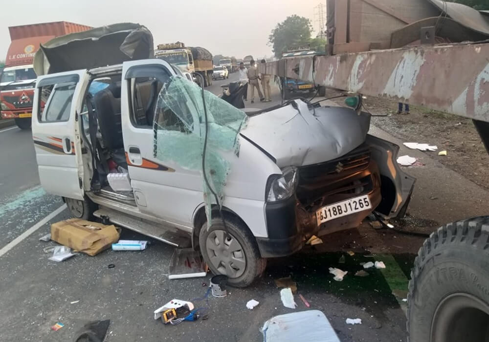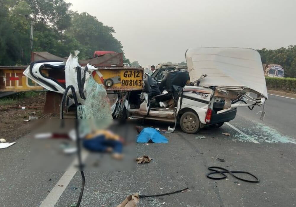 કોસંબા: હાઈવે ઉપર ઉભેલાં કન્ટેનર સાથે કાર ધડાકાભેર અથડાતાં 2 લોકોનાં કમકમાટીભર્યાં મોત, પતરું કાપીને કાઢવી પડી લાશો