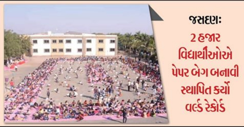 જસદણ: 2 હજાર વિદ્યાર્થીઓએ પેપર બેગ બનાવી સ્થાપિત કર્યો વર્લ્ડ રેકોર્ડ