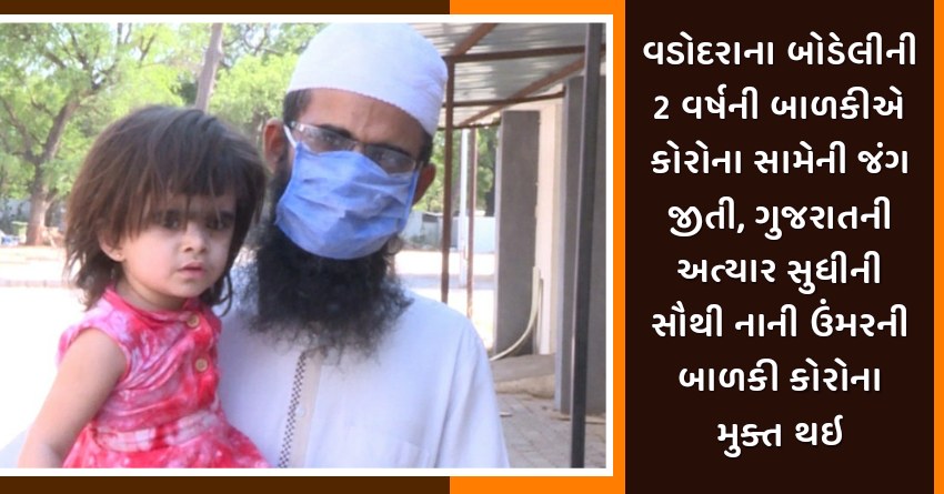 વડોદરાના બોડેલીની 2 વર્ષની બાળકીએ કોરોના સામેની જંગ જીતી, ગુજરાતની અત્યાર સુધીની સૌથી નાની ઉંમરની બાળકી કોરોના મુક્ત થઇ