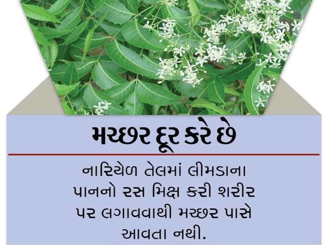 મચ્છર દૂર કરે છે નારિયેળ તેલમાં લીમડાના પાનનો રસ મિક્ષ કરી શરીર પર લગાવવાથી મચ્છર પાસે આવતા નથી.