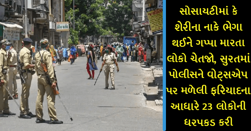 સોસાયટીમાં કે શેરીના નાકે ભેગા થઈને ગપ્પા મારતા લોકો ચેતજો, સુરતમાં પોલીસને વોટ્સએપ પર મળેલી ફરિયાદના આધારે 23 લોકોની ધરપકડ કરી