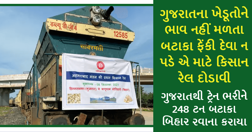 ગુજરાતના ખેડૂતોને ભાવ નહીં મળતા બટાકા ફેંકી દેવા ન પડે એ માટે કિસાન રેલ દોડાવી, ગુજરાતથી ટ્રેન ભરીને 248 ટન બટાકા બિહાર રવાના કરાયા