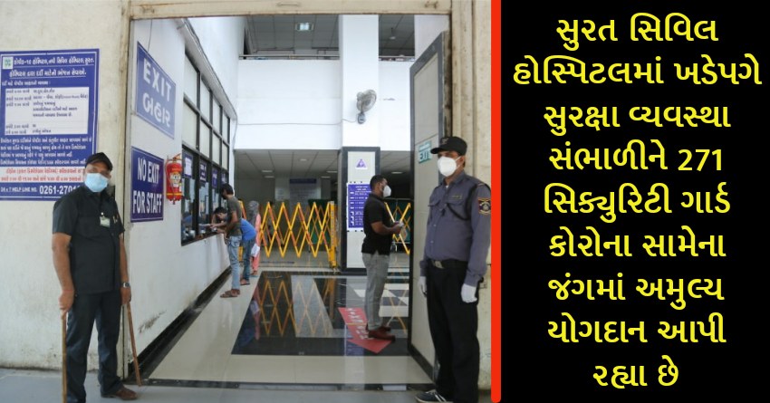 સુરત સિવિલ હોસ્પિટલમાં ખડેપગે સુરક્ષા વ્યવસ્થા સંભાળીને 271 સિક્યુરિટી ગાર્ડ કોરોના સામેના જંગમાં અમુલ્ય યોગદાન આપી રહ્યા છે