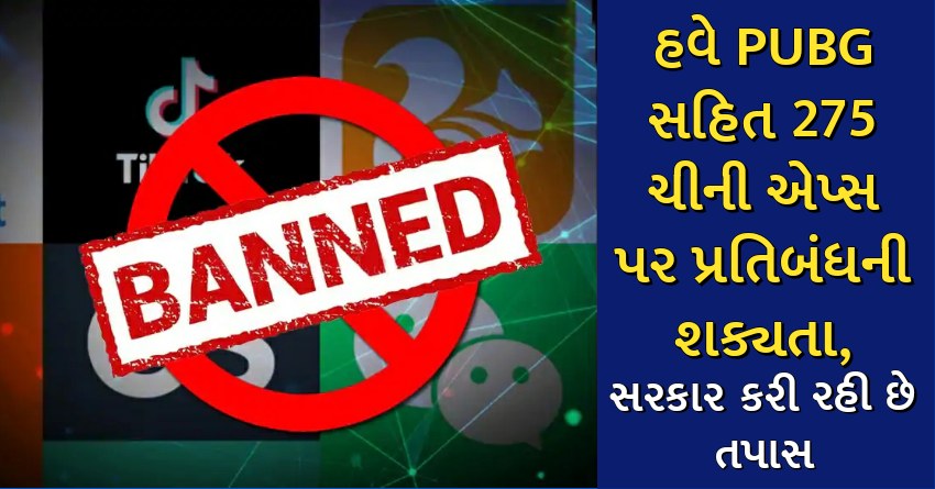 હવે PUBG સહિત 275 ચીની એપ્સ પર પ્રતિબંધની શક્યતા, સરકાર કરી રહી છે તપાસ