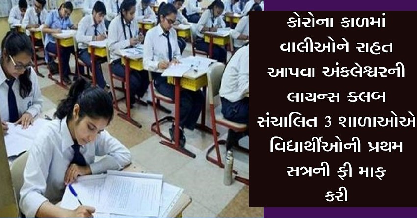 કોરોના કાળમાં વાલીઓને રાહત આપવા અંકલેશ્વરની લાયન્સ ક્લબ સંચાલિત 3 શાળાઓએ વિદ્યાર્થીઓની પ્રથમ સત્રની ફી માફ કરી
