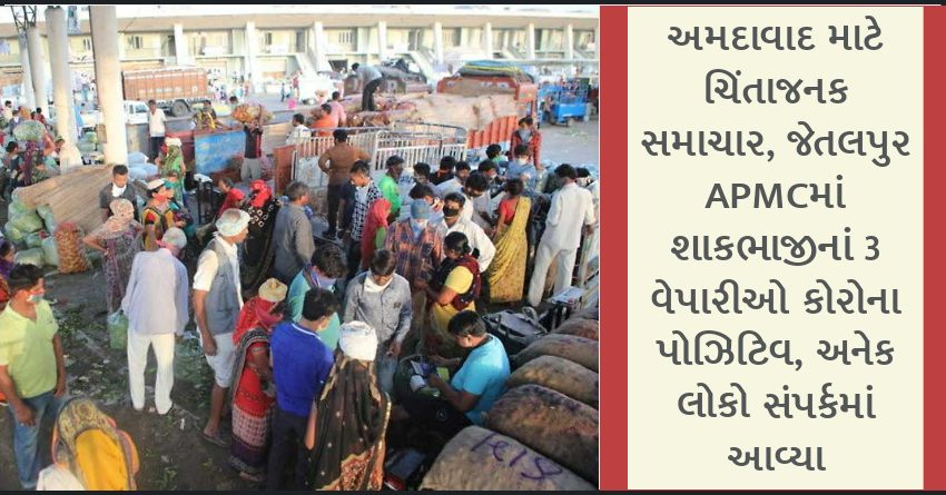 અમદાવાદ માટે ચિંતાજનક સમાચાર, જેતલપુર APMCમાં શાકભાજીનાં 3 વેપારીઓ કોરોના પોઝિટિવ, અનેક લોકો સંપર્કમાં આવ્યા