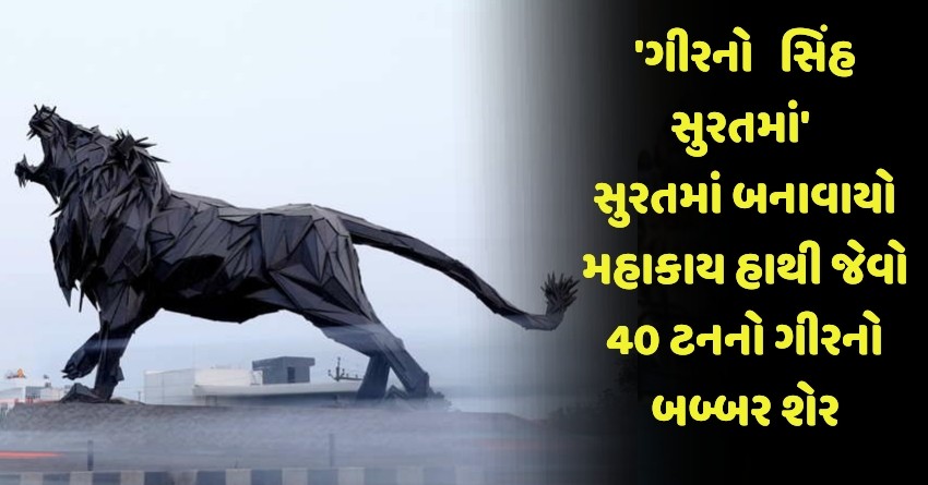 ‘ગીરનો સિંહ સુરતમાં’ સુરતમાં બનાવાયો મહાકાય હાથી જેવો 40 ટનનો ગીરનો બબ્બર શેર