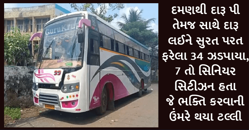 દમણથી દારૂ પી તેમજ સાથે દારૂ લઈને સુરત પરત ફરેલા 34 ઝડપાયા, 7 તો સિનિયર સિટીઝન હતા જે ભક્તિ કરવાની ઉંમરે થયા ટલ્લી