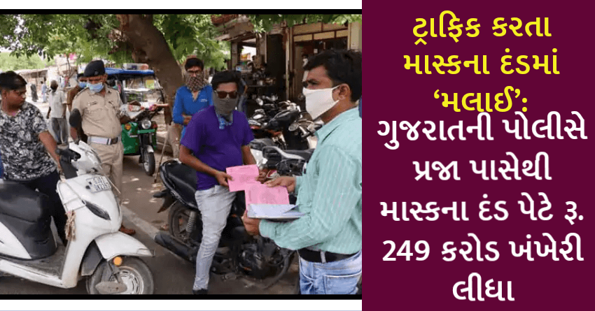ટ્રાફિક કરતા માસ્કના દંડમાં ‘મલાઈ’: ગુજરાતની પોલીસે પ્રજા પાસેથી માસ્કના દંડ પેટે રૂ. 249 કરોડ ખંખેરી લીધા