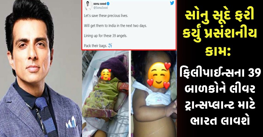 સોનુ સૂદે ફરી કર્યું પ્રસંશનીય કામ: ફિલીપાઈન્સના 39 બાળકોને લીવર ટ્રાન્સપ્લાન્ટ માટે ભારત લાવશે