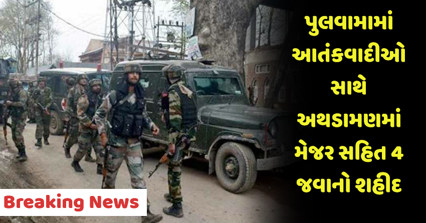 પુલવામામાં આતંકવાદીઓ સાથે અથડામણમાં મેજર સહિત 4 જવાનો શહીદ