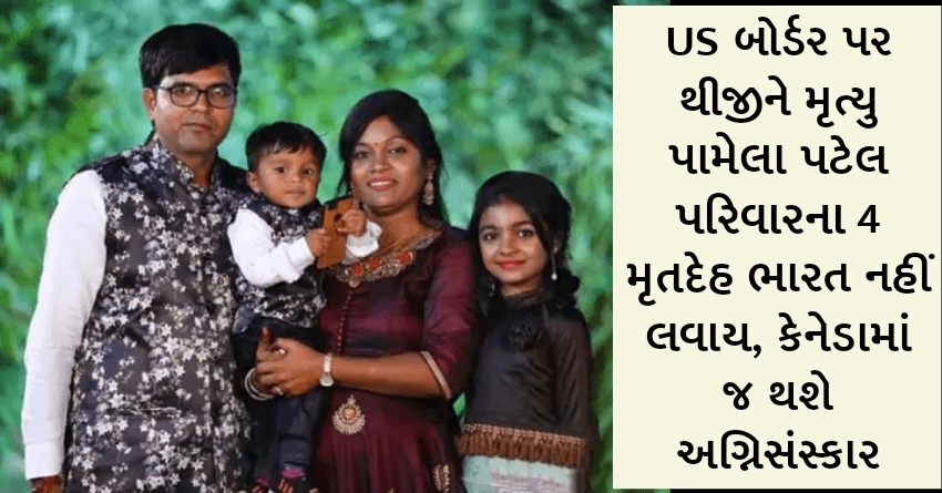 US બોર્ડર પર થીજીને મૃત્યુ પામેલા પટેલ પરિવારના 4 મૃતદેહ ભારત નહીં લવાય, કેનેડામાં જ થશે અગ્નિસંસ્કાર