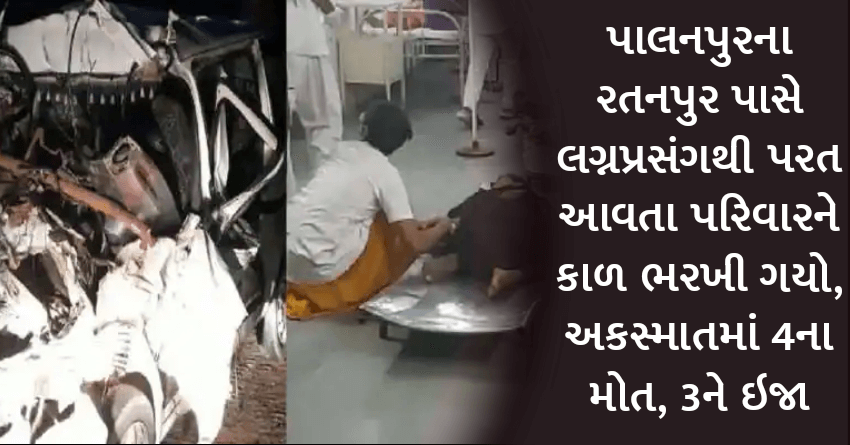 પાલનપુરના રતનપુર પાસે લગ્નપ્રસંગથી પરત આવતા પરિવારને કાળ ભરખી ગયો, અકસ્માતમાં 4ના મોત, 3ને ઇજા