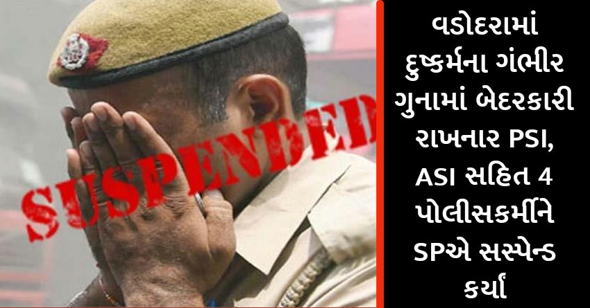 વડોદરામાં દુષ્કર્મના ગંભીર ગુનામાં બેદરકારી રાખનાર PSI, ASI સહિત 4 પોલીસકર્મીને SPએ સસ્પેન્ડ કર્યાં