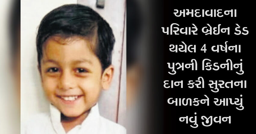 અમદાવાદના પરિવારે બ્રેઈન ડેડ થયેલ 4 વર્ષના પુત્રની કિડનીનું દાન કરી સુરતના બાળકને આપ્યું નવું જીવન