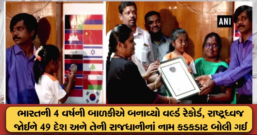 ભારતની 4 વર્ષની બાળકીએ બનાવ્યો વર્લ્ડ રેકોર્ડ, રાષ્ટ્રધ્વજ જોઈને 49 દેશ અને તેની રાજધાનીનાં નામ કડકડાટ બોલી ગઈ