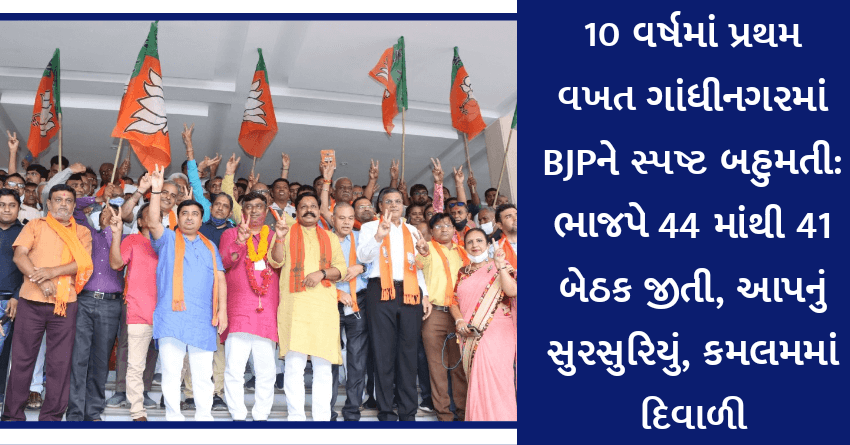 10 વર્ષમાં પ્રથમ વખત ગાંધીનગરમાં BJPને સ્પષ્ટ બહુમતી: ભાજપે 44માંથી 41 બેઠક જીતી, આપનું સુરસુરિયું, કમલમમાં દિવાળી