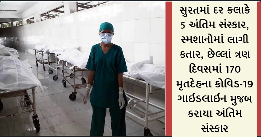 સુરતમાં દર કલાકે 5 અંતિમ સંસ્કાર, સ્મશાનોમાં લાગી કતાર, છેલ્લાં ત્રણ દિવસમાં 170 મૃતદેહના કોવિડ-19 ગાઇડલાઇન મુજબ કરાયા અંતિમ સંસ્કાર