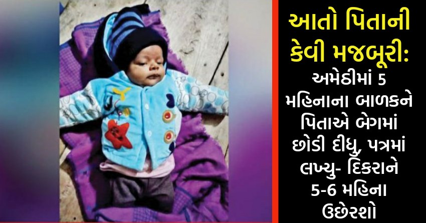ઉત્તર પ્રદેશના અમેઠીમાં એક આઘાતજનક ઘટના સામે આવી છે. અહીંના ત્રિલોકપુર ગામમાં એક બેગમાંથી 5 મહિનાનું બાળક મળી આવ્યું છે. બેગમાંથી શિયાળામાં પહેરવાના કપડા, જેકેટ, સાબુ, વિક્સ, દવાઓ અને 5 હજાર રૂપિયા પણ રાખવામાં આવ્યા હતા. આ બેગમાંથી એક પત્ર પણ મળી આવ્યો છે. આ પત્રને વાંચીને એવું લાગે છે કે તે બાળકના પિતા દ્વારા લખવામાં આવ્યો છે.
