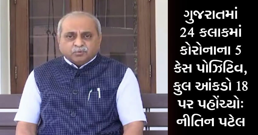 ગુજરાતમાં 24 કલાકમાં કોરોનાના 5 કેસ પોઝિટિવ, કુલ આંકડો 18 પર પહોંચ્યો: નીતિન પટેલ