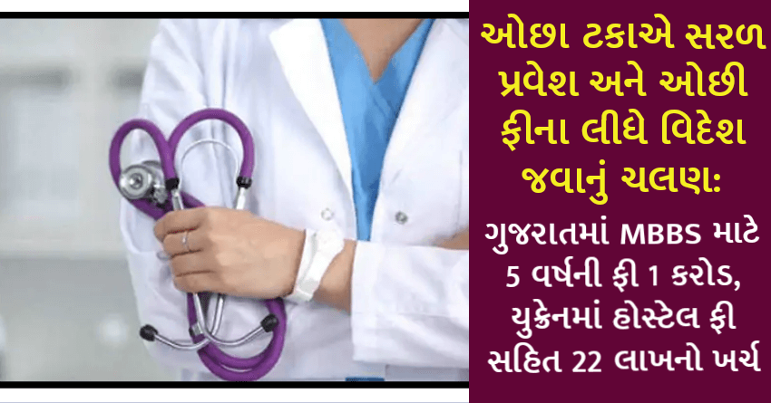 ઓછા ટકાએ સરળ પ્રવેશ અને ઓછી ફીના લીધે વિદેશ જવાનું ચલણ: ગુજરાતમાં MBBS માટે 5 વર્ષની ફી 1 કરોડ, યુક્રેનમાં હોસ્ટેલ ફી સહિત 22 લાખનો ખર્ચ