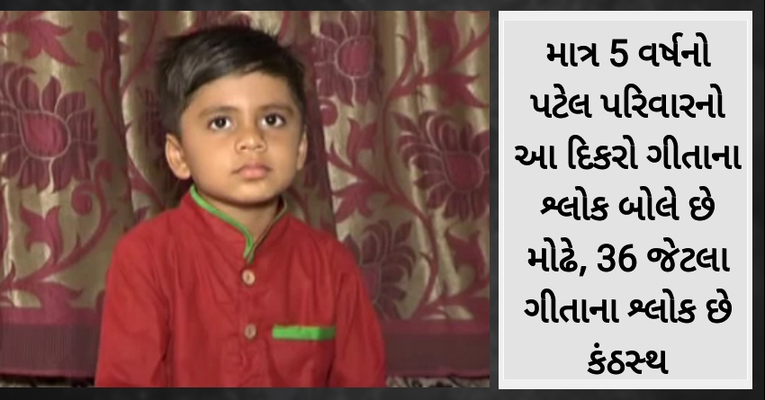 માત્ર 5 વર્ષનો પટેલ પરિવારનો આ દિકરો ગીતાના શ્લોક બોલે છે મોઢે, 36 જેટલા ગીતાના શ્લોક છે કંઠસ્થ