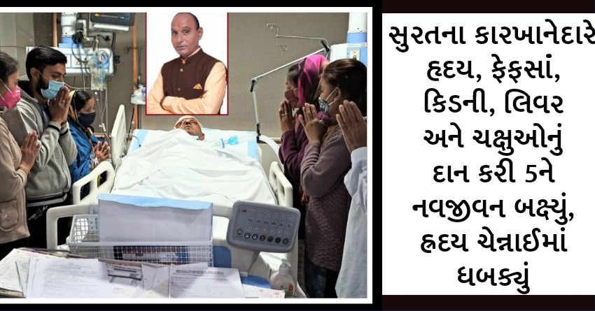 સુરતના કારખાનેદારે હૃદય, ફેફસાંં, કિડની, લિવર અને ચક્ષુઓનું દાન કરી 5ને નવજીવન બક્ષ્યું, હ્રદય ચેન્નાઈમાં ધબક્યું