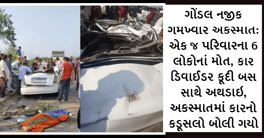 ગોંડલ નજીક ગમખ્વાર અકસ્માત: એક જ પરિવારના 6 લોકોનાં મોત, કાર ડિવાઈડર કૂદી બસ સાથે અથડાઇ, અકસ્માતમાં કારનો કડૂસલો બોલી ગયો