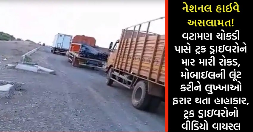 નેશનલ હાઇવે અસલામત! વટામણ ચોકડી પાસે ટ્રક ડ્રાઇવરોને માર મારી રોકડ, મોબાઇલની લૂંટ કરીને લુખ્ખાઓ ફરાર થતા હાહાકાર, ટ્રક ડ્રાઇવરોનો વીડિયો વાયરલ