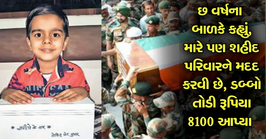 છ વર્ષના બાળકે કહ્યું, મારે પણ શહીદપરિવારને મદદ કરવી છે, ડબ્બો તોડી રૂપિયા 8100 આપ્યા