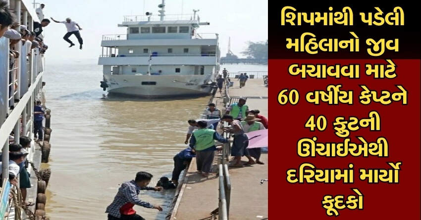 મ્યાનમારમાં ડાલા પોર્ટ પર એક મહિલા અચાનક શિપ પરથી યંગુન નદીમાં પડી ગઈ હતી. આ મહિલાને બચાવવા માટે 60 વર્ષના કેપ્ટને 40 ફુટની ઊંચાઈથી દરિયામાં કૂદકો માર્યો અને મહિલાને મોતના મુખમાંથી બચાવી.