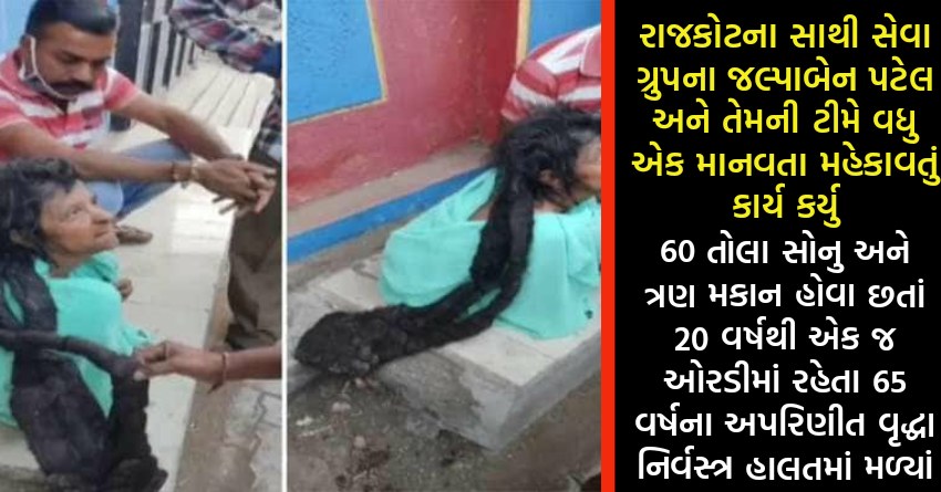 રાજકોટના સાથી સેવા ગ્રુપના જલ્પાબેન પટેલ અને તેમની ટીમે વધુ એક માનવતા મહેકાવતું કાર્ય કર્યુ: 60 તોલા સોનુ અને ત્રણ મકાન હોવા છતાં 20 વર્ષથી એક જ ઓરડીમાં રહેતા 65 વર્ષના અપરિણીત વૃદ્ધા નિર્વસ્ત્ર હાલતમાં મળ્યાં