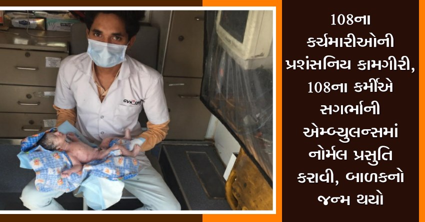 108ના કર્ચમારીઓની પ્રશંસનિય કામગીરી, 108ના કર્મીએ સગર્ભાની એમ્બ્યુલન્સમાં નોર્મલ પ્રસુતિ કરાવી, બાળકનો જન્મ થયો