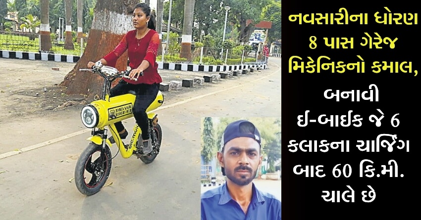 નવસારીના ધોરણ 8 પાસ ગેરેજ મિકેનિકનો કમાલ, બનાવી ઈ-બાઈક જે 6 કલાકના ચાર્જિંગ બાદ 60 કિ.મી. ચાલે છે