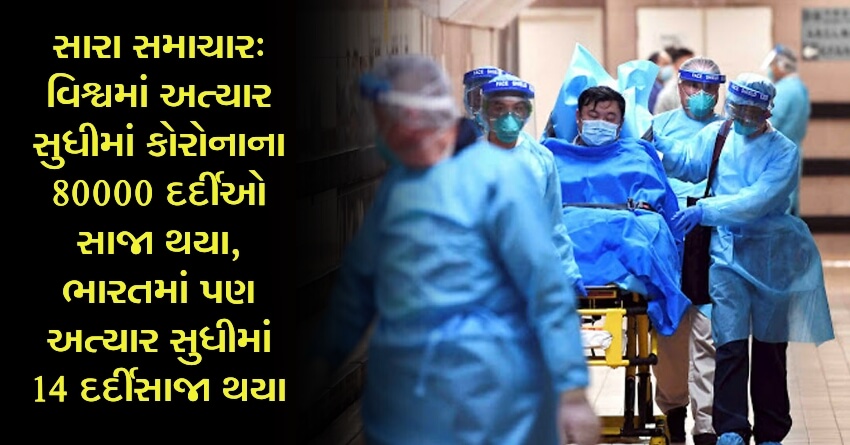 સારા સમાચાર: વિશ્વમાં અત્યાર સુધીમાં કોરોનાના 80000 દર્દીઓ સાજા થયા, ભારતમાં પણ અત્યાર સુધીમાં 14 દર્દીસાજા થયા