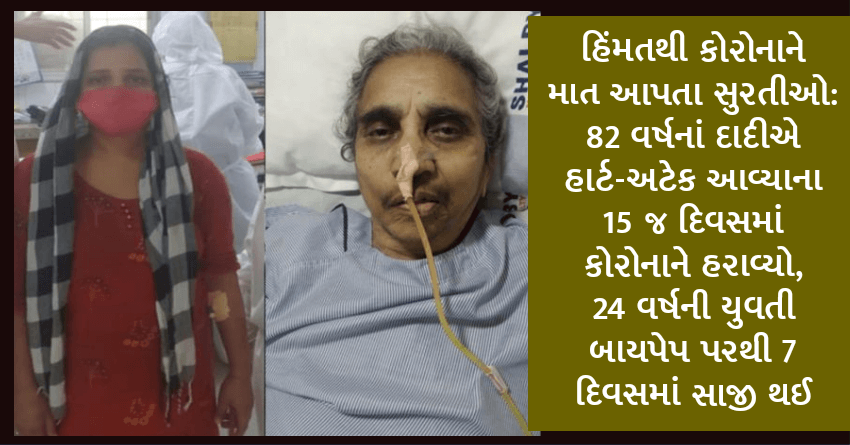 હિંમતથી કોરોનાને માત આપતા સુરતીઓ: 82 વર્ષનાં દાદીએ હાર્ટ-અટેક આવ્યાના 15 જ દિવસમાં કોરોનાને હરાવ્યો, 24 વર્ષની યુવતી બાયપેપ પરથી 7 દિવસમાં સાજી થઈ