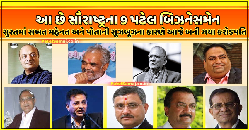 ડાયમંડ સિટી સુરતમાં અનેક બિઝનેસમેનોએ સંઘર્ષ કરી સફળતા મેળવી છે. સૌરાષ્ટ્રના લોકોને તો સુરત સાથે નાતો જ કંઈક અલગ છે. વેપાર-રોજગાર માટે સૌરાષ્ટ્રના અલગ અલગ વિસ્તારમાંથી સુરત આવેલા અનેક લોકોનું નસીબ આ શહેરમાં ચમક્યું છે. સૌરાષ્ટ્રથી સુરતમાં સ્થાયી થયેલા મોટાભાગના લોકો હીરા, ટેક્સટાઈલ કે રિયલ એસ્ટેટ બિઝનેસ સાથે સંકળાયેલા છે. નાની મૂડીએ બિઝનેસ શરૂ કરી સખત મહેનત અને પોતાની ગામઠી સૂઝબૂઝના કારણે આજે તેઓ કરોડો રૂપિયાના માલિક બન્યા છે. સૌરાષ્ટ્રથી સુરત આવી કરોડપતિ બનેલા આવા જ કેટલાક પટેલ બિઝનેસમેન વિશે માહિતી આપી રહ્યા છીએ.