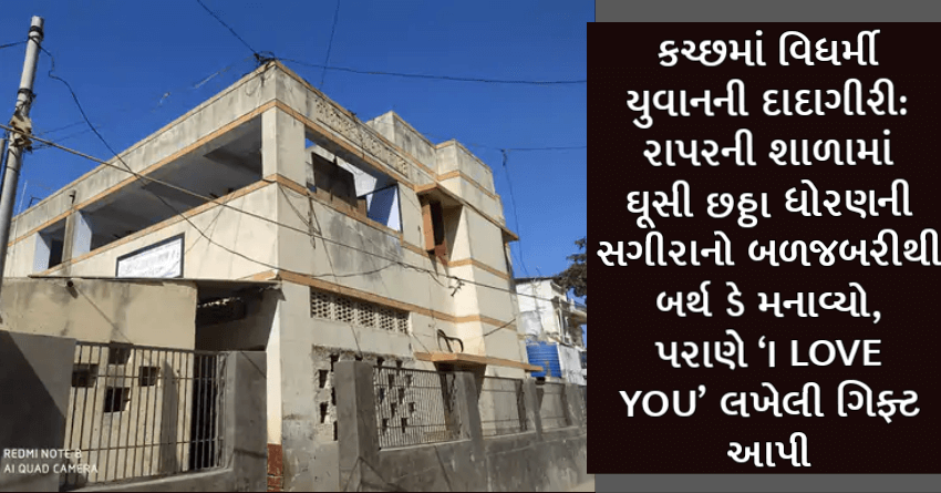 કચ્છમાં વિધર્મી યુવાનની દાદાગીરી: રાપરની શાળામાં ઘૂસી છઠ્ઠા ધોરણની સગીરાનો બળજબરીથી બર્થ ડે મનાવ્યો, પરાણે ‘I LOVE YOU’ લખેલી ગિફ્ટ આપી