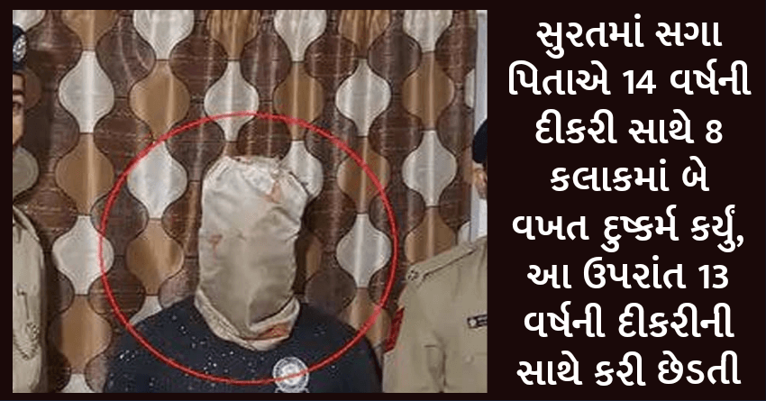 સુરતમાં સગા પિતાએ 14 વર્ષની દીકરી સાથે 8 કલાકમાં બે વખત દુષ્કર્મ કર્યું, આ ઉપરાંત 13 વર્ષની દીકરી સાથે કરી છેડતી