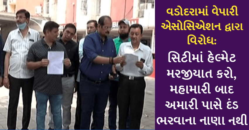 વડોદરામાં વેપારી એસોસિએશન દ્વારા વિરોધ: સિટીમાં હેલ્મેટ મરજીયાત કરો, મહામારી બાદ અમારી પાસે દંડ ભરવાના નાણા નથી