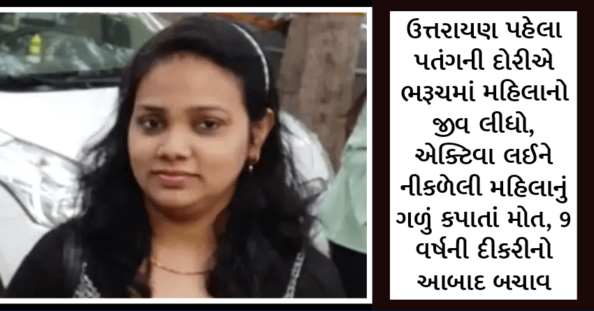 ઉત્તરાયણ પહેલા પતંગની દોરીએ ભરૂચમાં મહિલાનો જીવ લીધો, એક્ટિવા લઈને નીકળેલી મહિલાનું ગળું કપાતાં મોત, 9 વર્ષની દીકરીનો આબાદ બચાવ